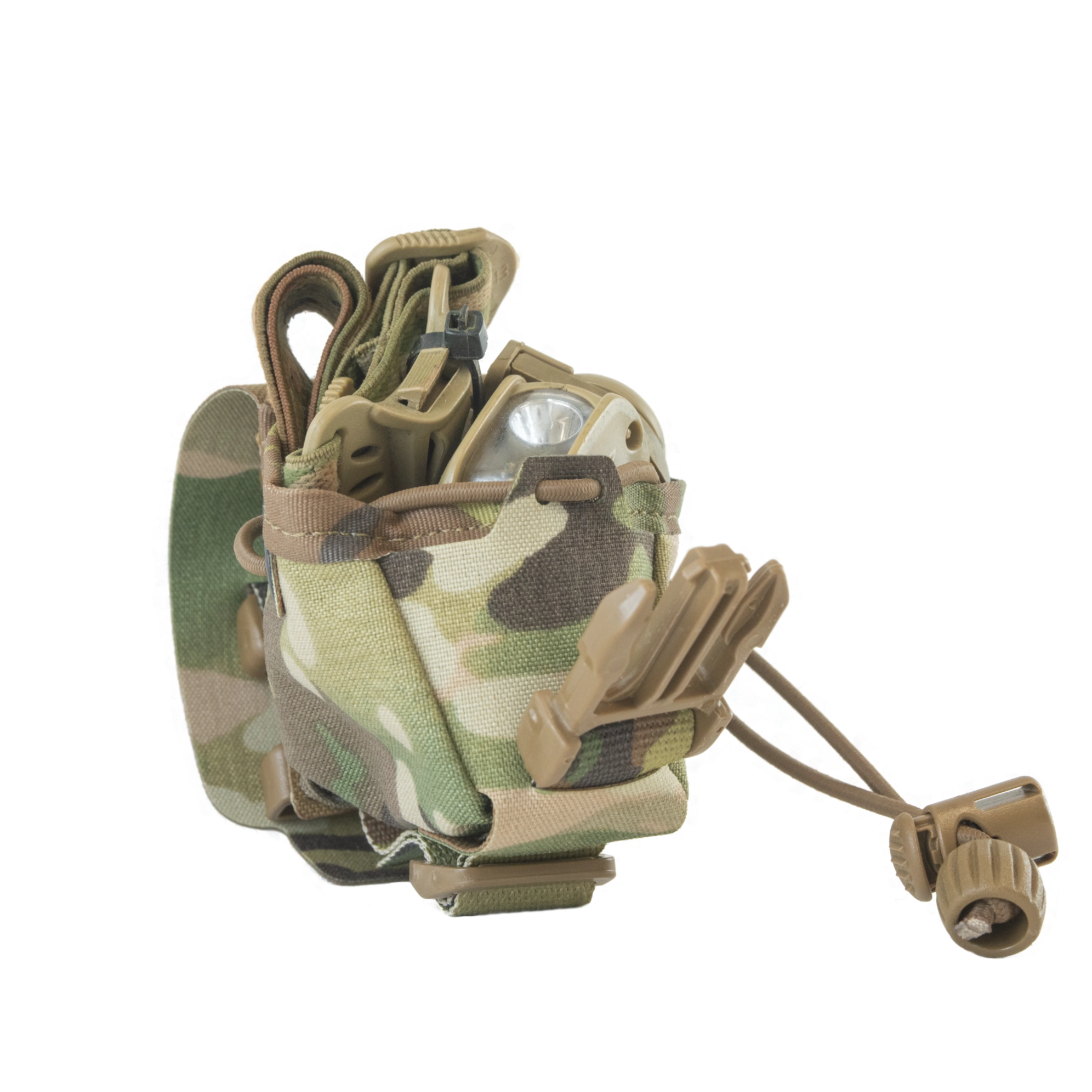 The C13 Pouch is a versatile pouch designed to carry C13/M67 Fragmentation grenades. When not carrying frags, the C13 pouch can be used to carry other "in field" essentials such as headlamps or personal sustainment equipment. With a field replaceable buckle closure system, the pouch does not require any Velcro to open. For added security, the Boreal Defence C13 pouch uses a semi internal shock cord tension adjuster to allow users to adjust their retention on items inside the pouch as required. When set, users can pass their adjuster tail either under the exposed webbing on the bottom or inside the pouch as needed.